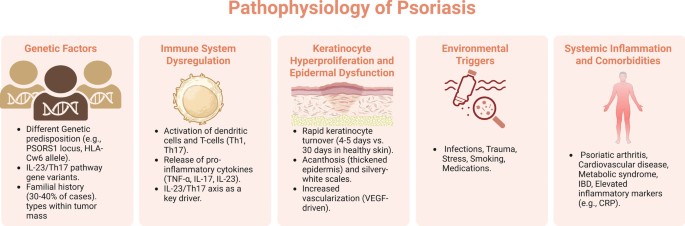 Plaque Psoriasis Red, scaly skin patches; chronic inflammation Cosmetic concerns; pruritus; psychological impact